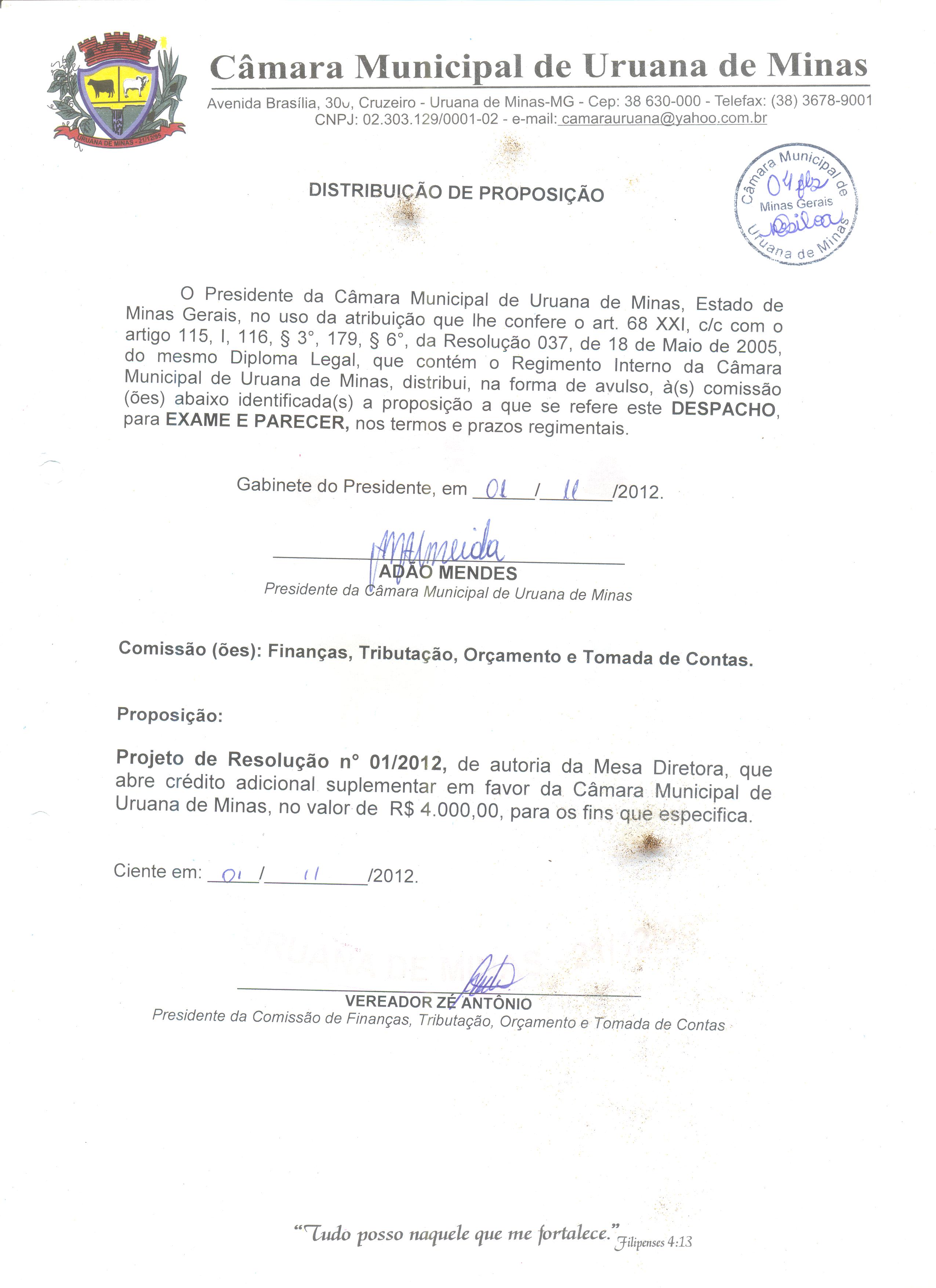 | Designa Relator | DESPACHO | 01/11/2012 | Vereador Zé Antônio | 39.jpeg |