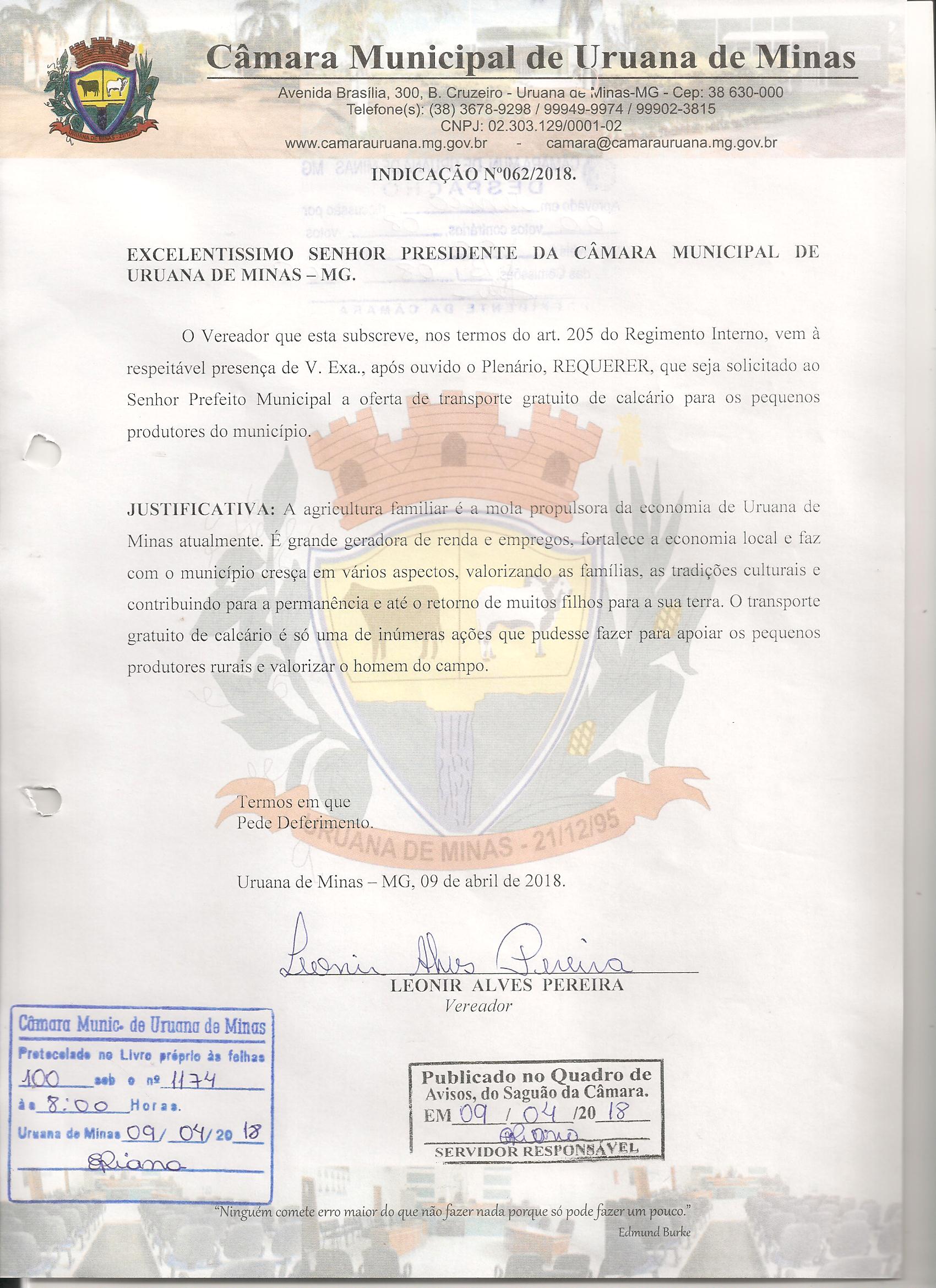 Ementa: REQUER QUE SEJA SOLICITADO O TRANSPORTE GRATUITO DE CALCÁRIO PARA OS PEQUENOS PRODUTORES